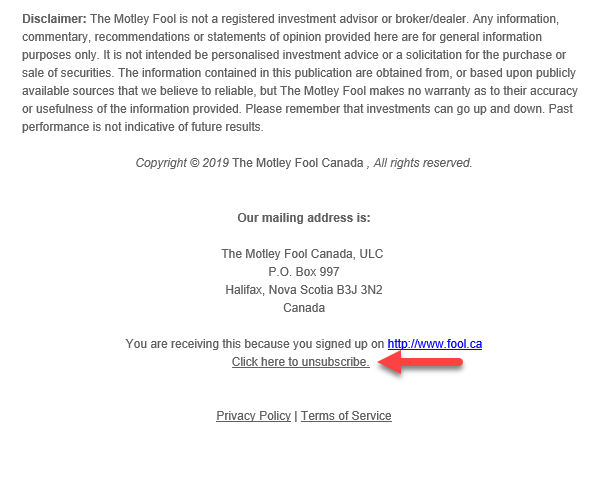 How to unsubscribe from our mailing lists? To unsubscribe from our promotional emails please click the unsubscribe link within the footer section of the email you have received., as shown in the image below.